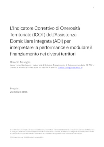 L’Indicatore Correttivo di Onerosità Territoriale (ICOT) dell'Assistenza Domiciliare Integrata (ADI) per interpretare la performance e modulare il finanziamento nei diversi territori.