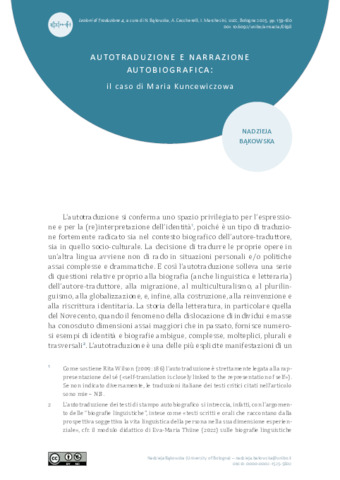Autotraduzione e narrazione autobiografica: il caso di Maria Kuncewiczowa.