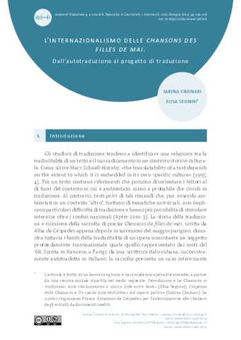 L’internazionalismo delle Chansons des filles de mai. Dall’autotraduzione al progetto di traduzione.