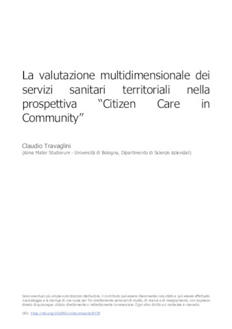 Documento di testo(pdf) (La valutazione multidimensionale dei servizi sanitari territoriali nella prospettiva “Citizen Care in Community”)