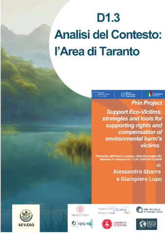 Il presente report illustra l’attività di indagine preliminare svolta nell’ambito di SEVeso, progetto di ricerca che mira a integrare i temi dell’accesso alla giustizia ambientale, della tutela delle eco-vittime e della sperimentazione di strumenti di democrazia deliberativa e giustizia riparativa nei territori oggetto di studio. Si tratta di un’attività di ricerca finalizzata a ricostruire il posizionamento, le percezioni e le aspettative dei principali stakeholder coinvolti o interessati dalle problematiche ambientali, sanitarie e giuridiche nel territorio di Taranto.