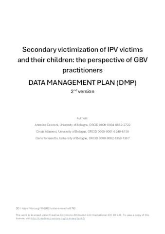 - Secondary victimization of IPV victims and their children: the perspective of GBV practitioners. DATA MANAGEMENT PLAN (DMP), 2nd version. (deposited 10 Feb 2026 13:59) [Attualmente visualizzato]